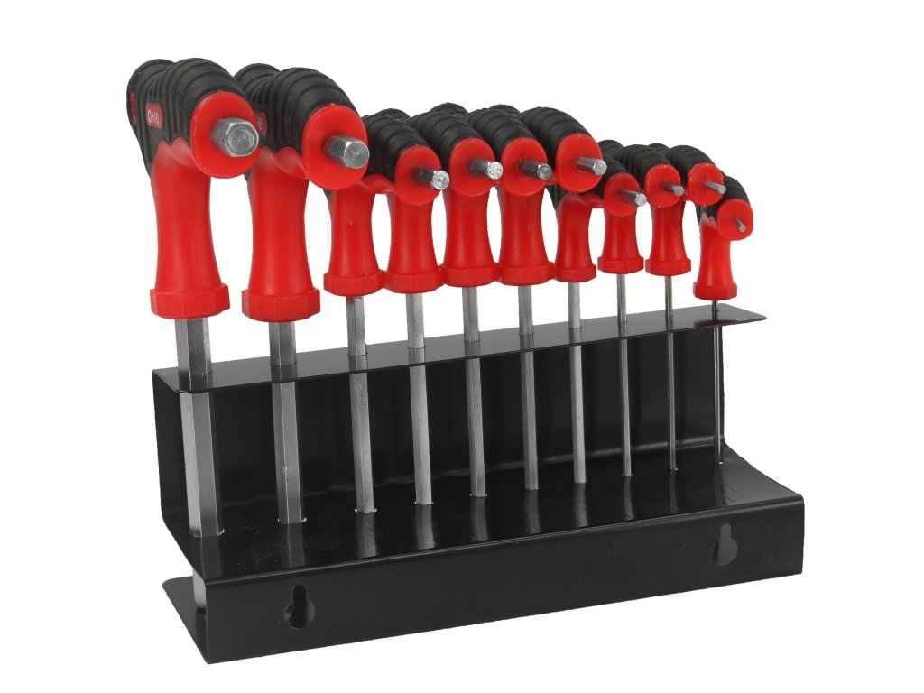 SADA Imbus skrutkovačov v tvare "T" 10 ks na kovovom stojane s možnosťou zavesenia na stenu
