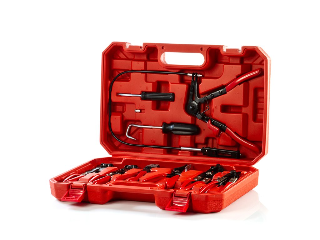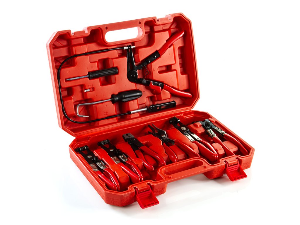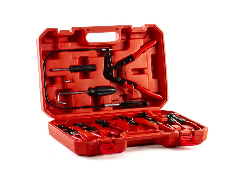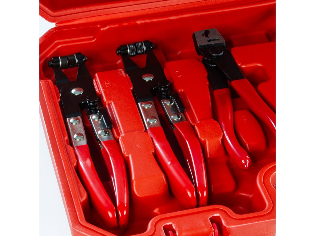 7ks rôznych kliešti aj s možnou aretáciou spony v otvorenom stave- uľahčuje manipuláciu so sponami a hadicami počas servisných úkonov.