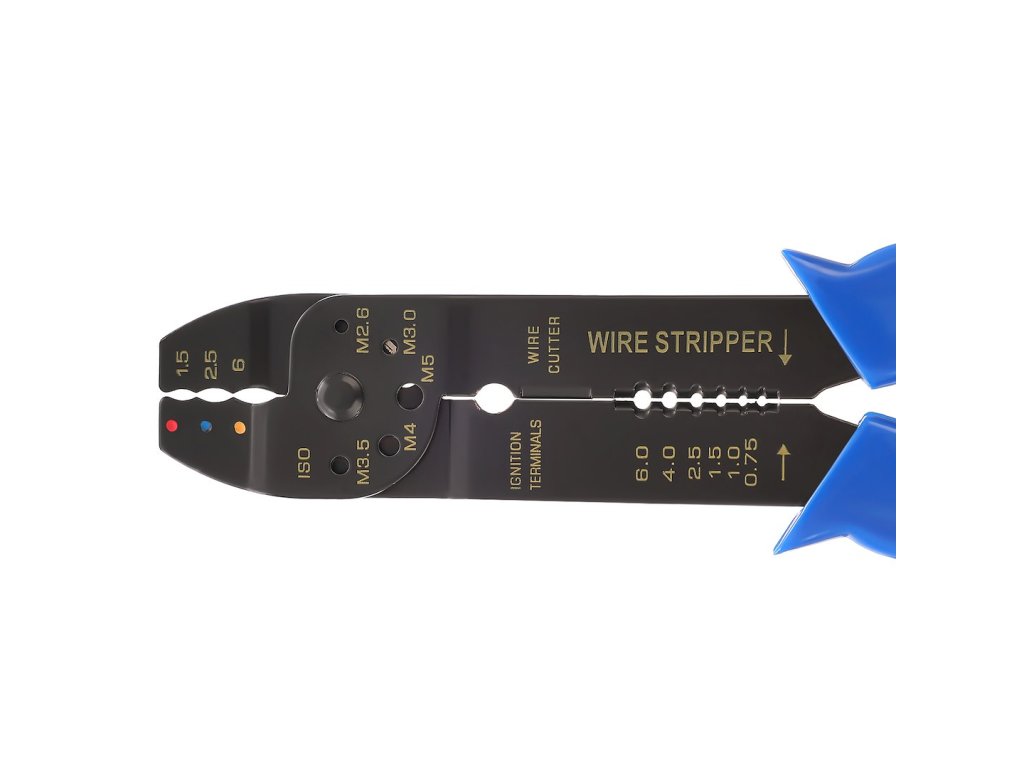 - tri vstupy na krimpovanie koncoviek v rozsahu: 0.5 - 0.75 mm²; 1.25 - 2.0 mm²; 3.0 - 5.0 mm²