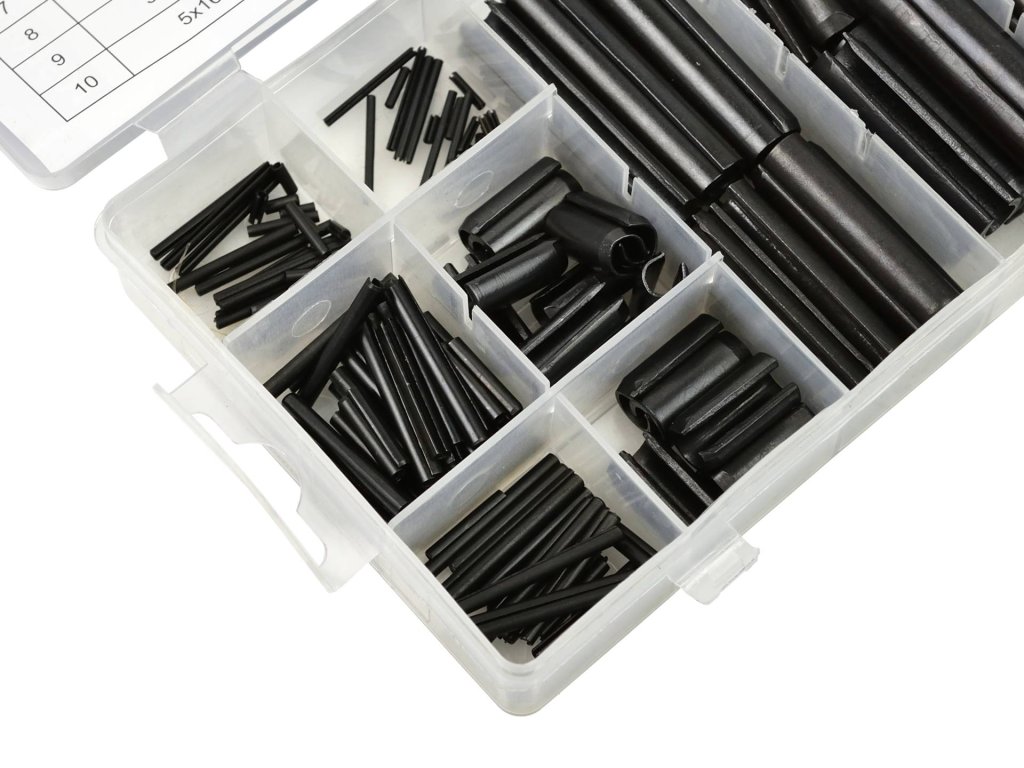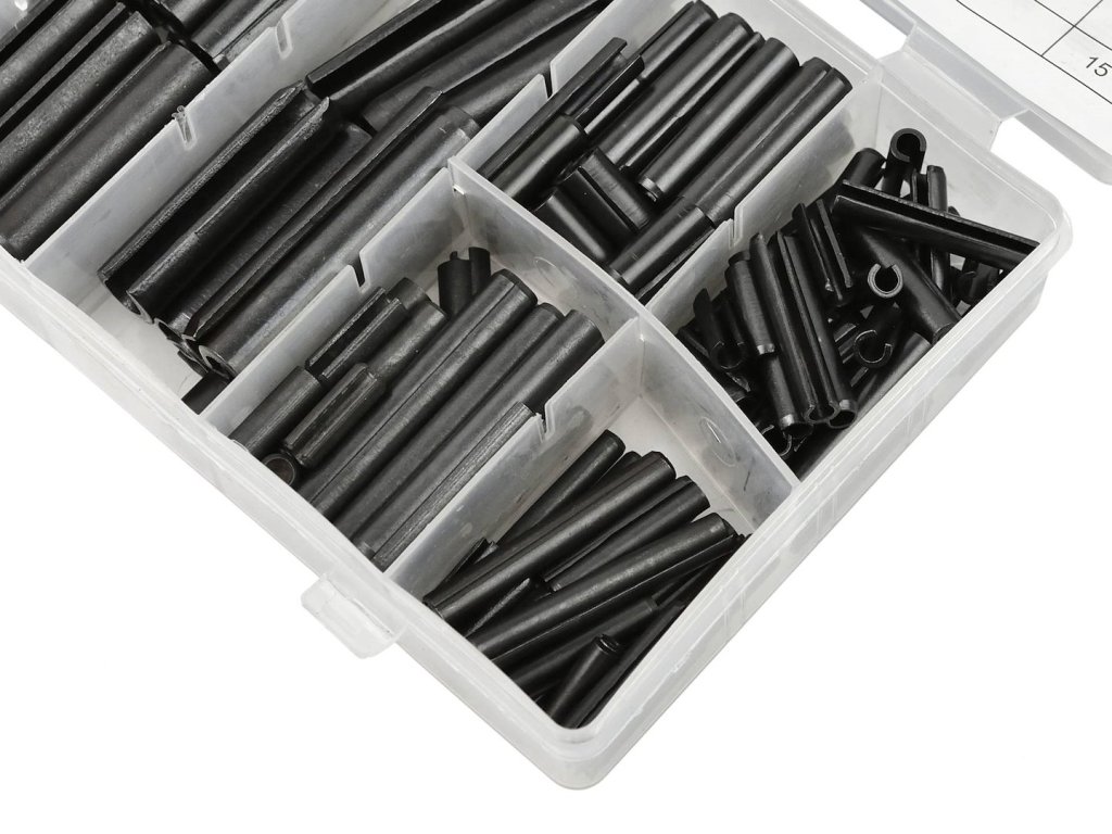 Univerzálna, prehľadná a praktická sada pružných kolíkov na spojenie hriadele s nábojom.
