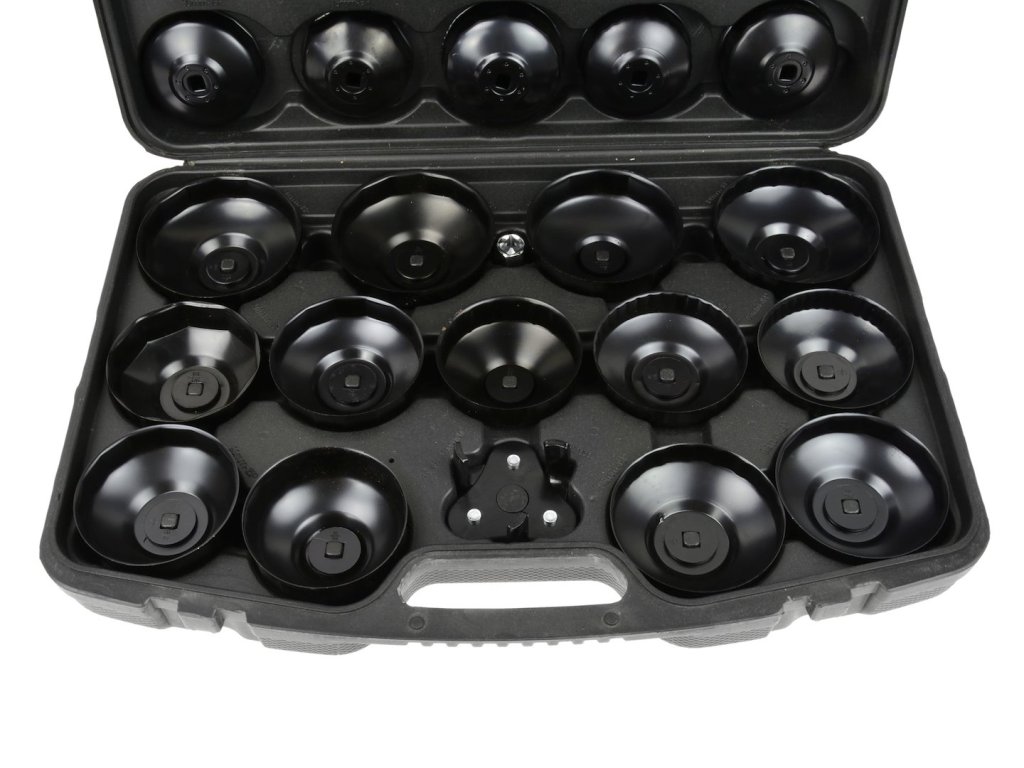 Sada 30 nátrubkov na odskrutkovanie olejových filtrov. Pasuje na väčšinu osobných automobilov vyrábaných na európskom, americkom a ázijskom trhu.