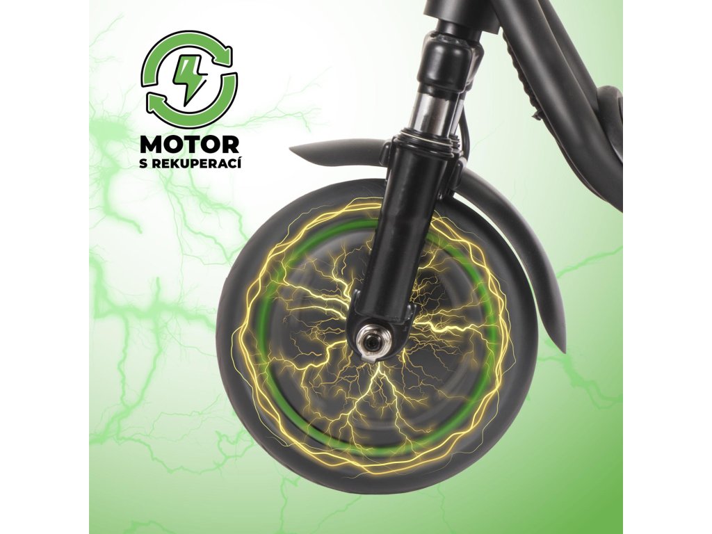 Kolobežka využíva 36V 10400mAh batériu, ktorá v spojení s rekuperačným brzdným systémom a funkciou tempomatu zabezpečuje efektívnu a úspornú prevádzku. Rekuperácia vracia časť energie späť do batérie pri spomaľovaní, zatiaľ čo tempomat pomáha udržiavať konštantnú rýchlosť bez nutnosti držať plynovú páčku. Vďaka tejto technológii dosahuje skúter na jedno nabitie dojazd až 36 km. Plné nabitie trvá približne 8 hodín.