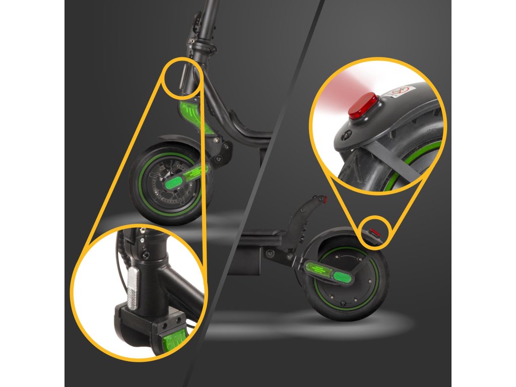 Kolobežka DS500L je vybavená výkonným 500W motorom, ktorý dosahuje maximálnu rýchlosť 25 km/h a umožňuje plynulú jazdu aj v náročných podmienkach. Bezpečnosť zaisťujú predné kotúčové a zadné bubnové brzdy, ktoré poskytujú účinný brzdný účinok a maximálnu kontrolu.