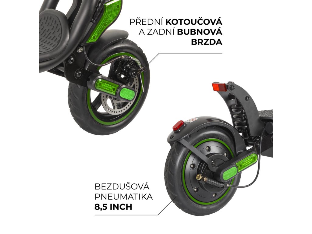 - 8,5“ bezdušové pneumatiky pre hladkú a stabilnú jazdu