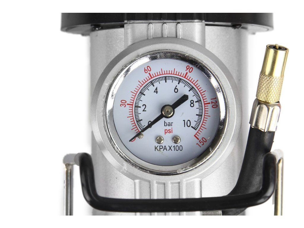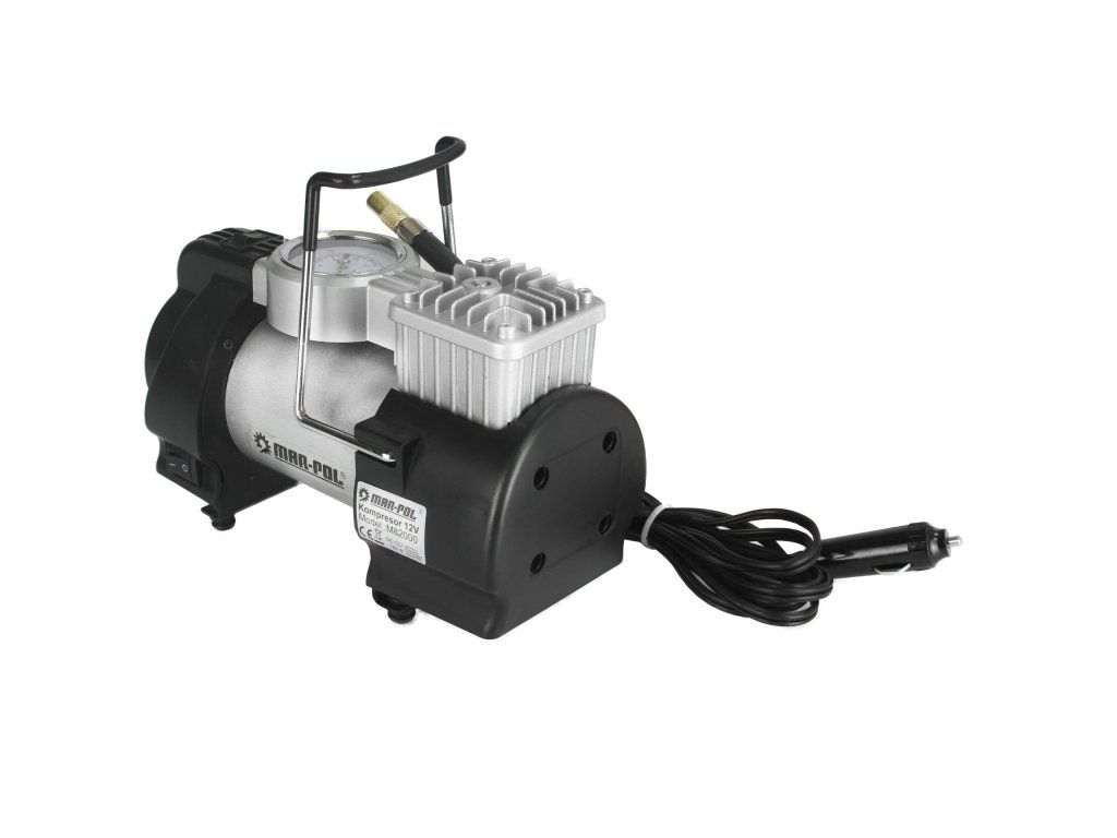 Účinný 12V kompresor je užitočným zariadením v mnohých situáciách. Kompresor je napájaný 12V (zásuvka zapaľovača v aute). Je vyrobený z kovu, má pohodlnú rukoväť na prenášanie a nohy , ktoré zaisťujú stabilizáciu pri práci. Nechýba ani vypínač. Súprava obsahuje vstavaný tlakomer, ako aj 3 trysky na pumpovanie napríklad loptičiek a vrecúško so zipsom.