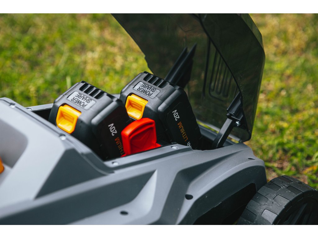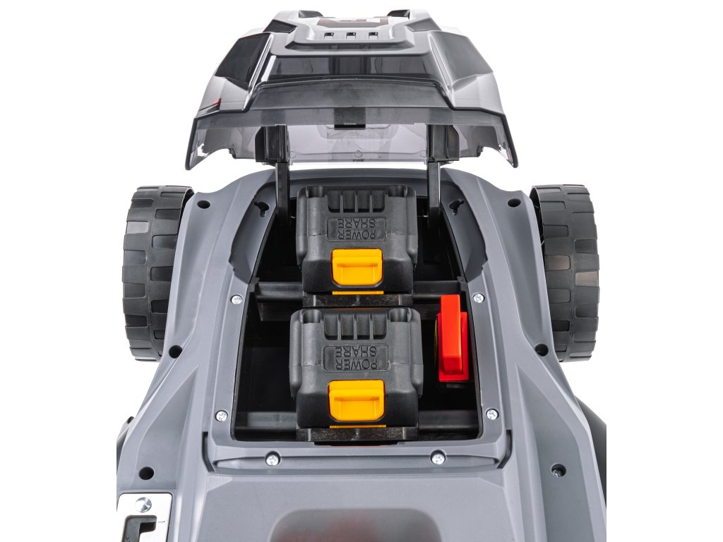 Kosačka pracuje s batériami systému POWER SHARE, ktorý umožňuje výmenu jednej batérie v rôznych strojoch rovnakej značky. Toto riešenie šetrí nákup ďalších batérií a predlžuje čas prevádzky rýchlou výmenou batérií.