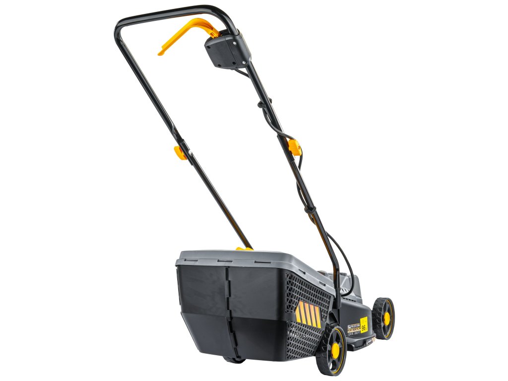 Vystužený kryt s dvojitými stenami chráni pred mechanickým poškodením, napríklad kameňmi. Šírka záberu 32 cm zaručuje vysokú pracovnú rýchlosť, zatiaľ čo kompaktná a ľahká konštrukcia robí kosačku ideálnou pre menšie a stredne veľké pozemky.