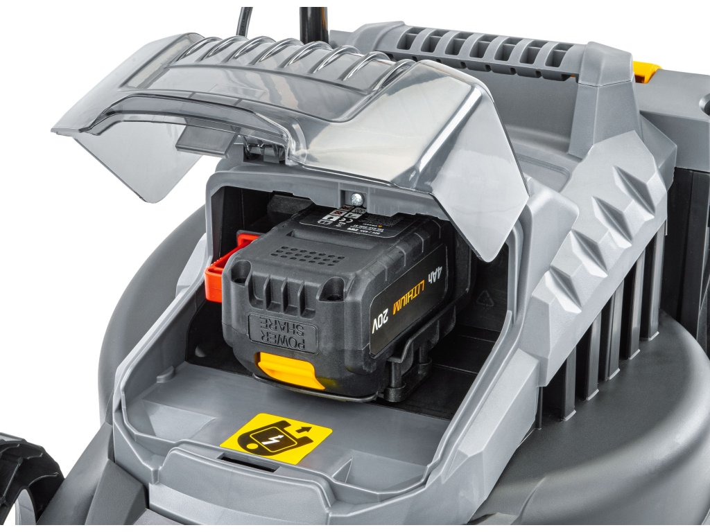 Kosačka pracuje s batériami systému POWER SHARE, ktorý umožňuje výmenu jednej batérie v rôznych strojoch rovnakej značky. Toto riešenie šetrí nákup ďalších batérií a predlžuje čas prevádzky rýchlou výmenou batérií.