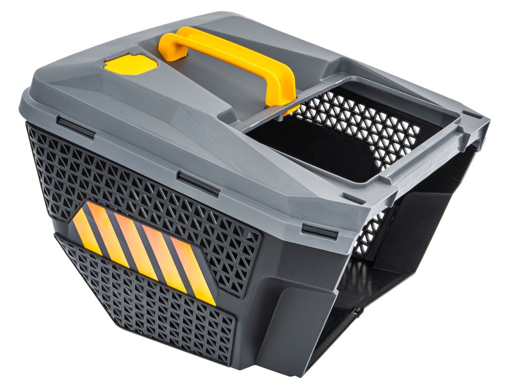Objemný 42-litrový box na kosenie trávy s odklopným vekom, ktoré signalizuje naplnenie. Umožňuje dlhšiu prevádzku bez častého vyprázdňovania.