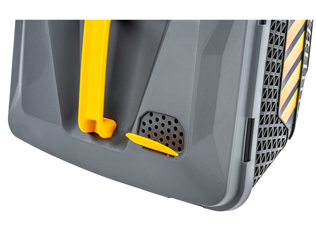 Pohodlné a bezpečné uloženie 20V akumulátora s kapacitou 4 Ah. Bezpečnostný systém chráni pred náhodným spustením, čím zvyšuje bezpečnosť používania.
