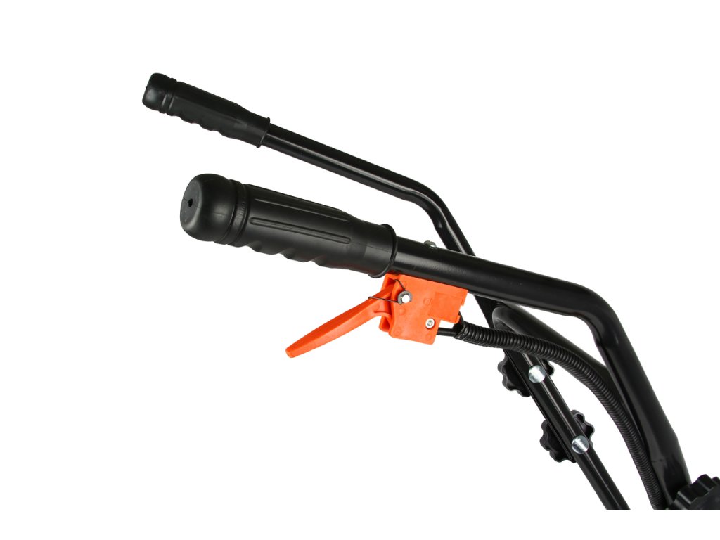 Kovový kryt kypriaceho zariadenia chráni pred kameňmi hádzanými počas prevádzky a protišmykové rukoväte zaisťujú bezpečné uchopenie a bezpečné používanie. Vďaka malým rozmerom, nízkej hmotnosti a možnosti skladania rukovätí sa zariadenie ľahko prepravuje a skladuje.
