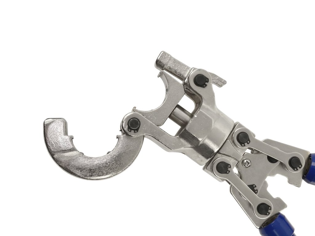 Kliešte majú teleskopicky výsuvné rukoväte pre dosiahnutie vyššieho lisovacieho tlaku.