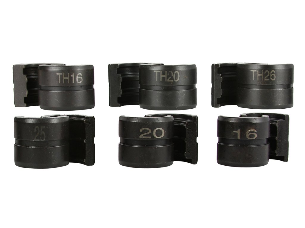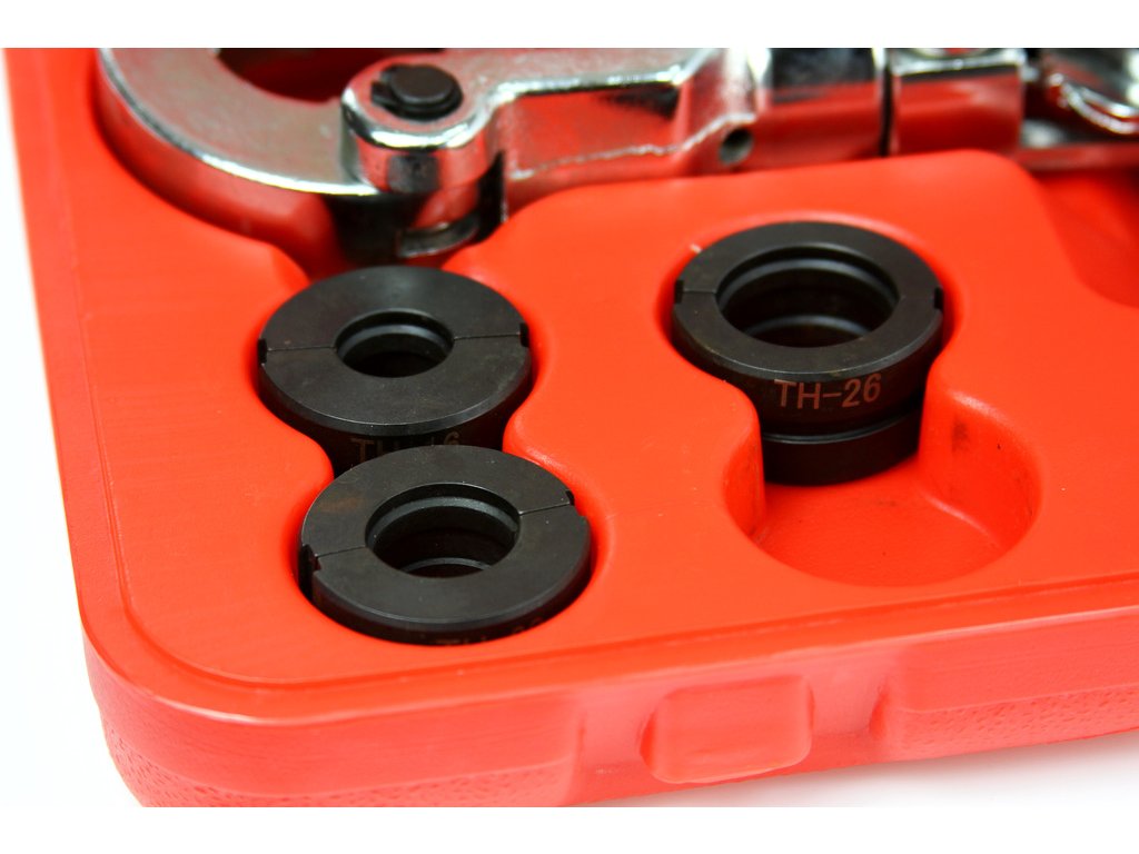 Vymeniteľné čeľuste umožňujú pracovať v celom rozsahu priemerov viacvrstvových rúr od 16 do 26 mm.