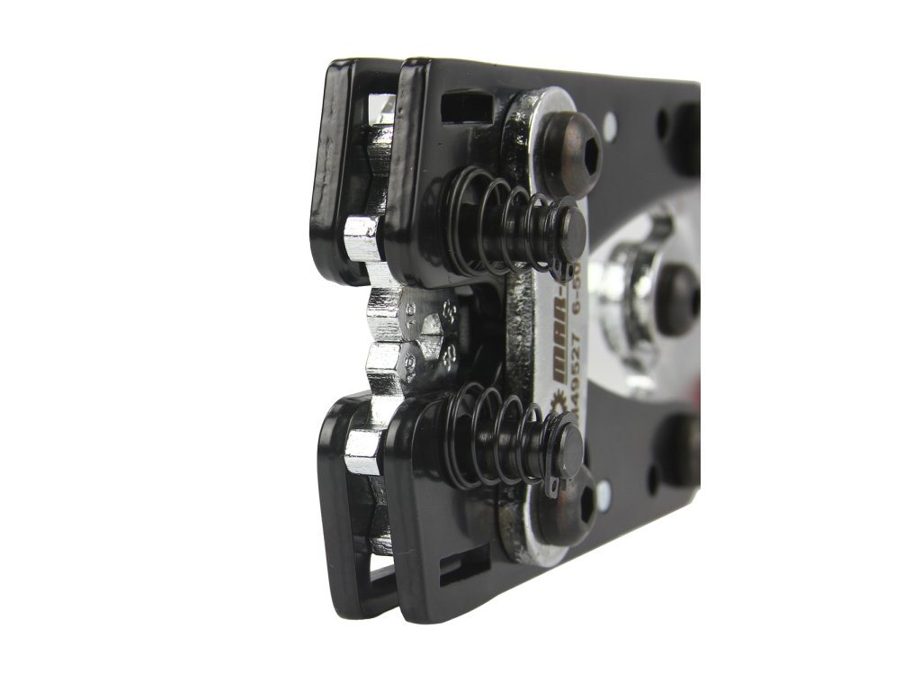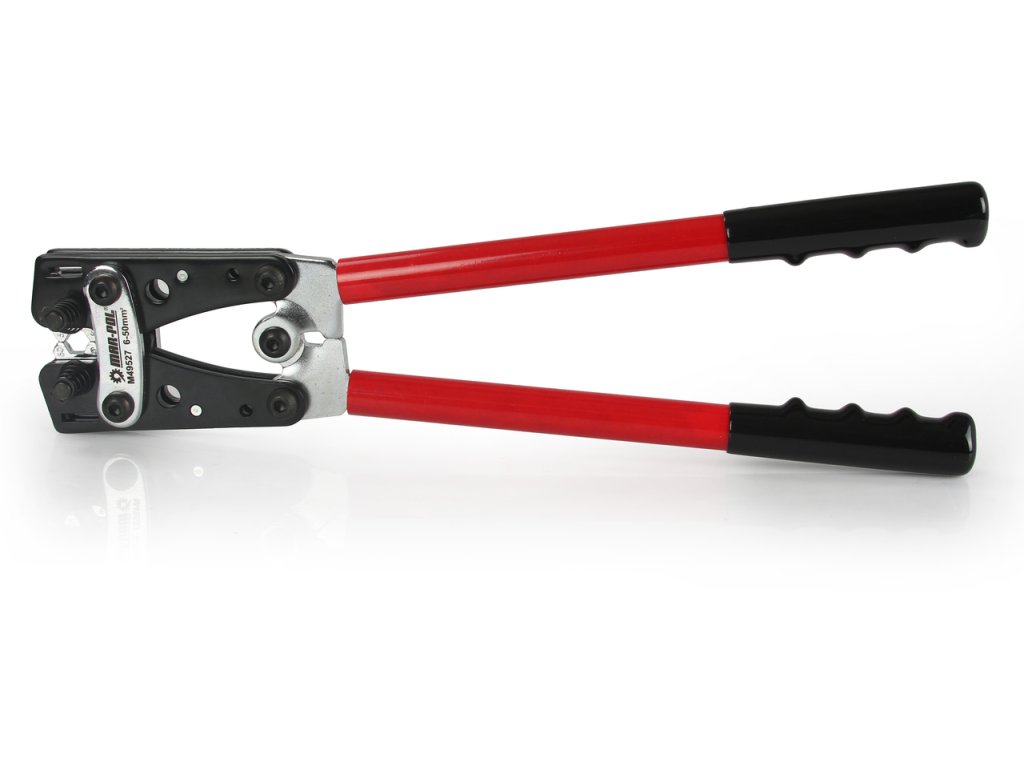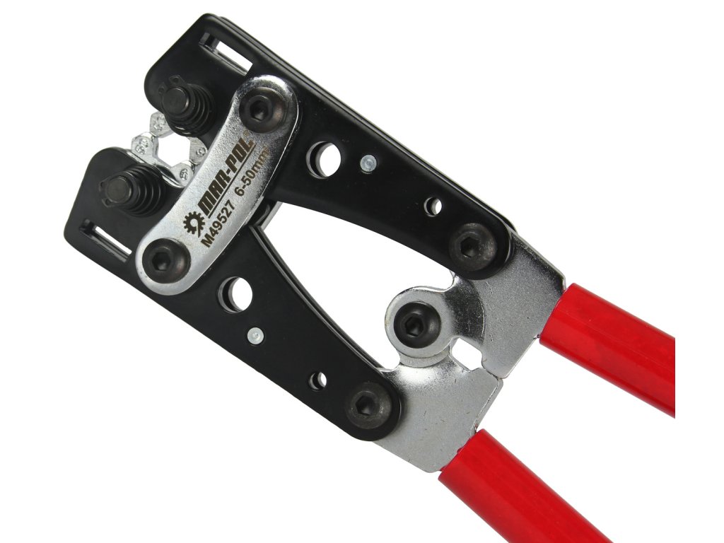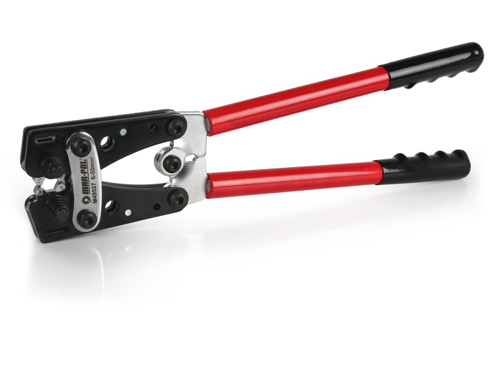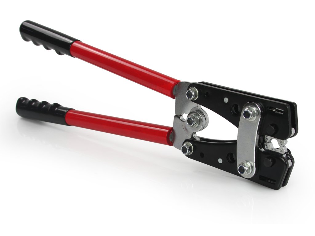 Mechanické, ručné lisovacie kliešte na medené konce káblov, so šesťhrannou hlavou z kalenej ocele.
