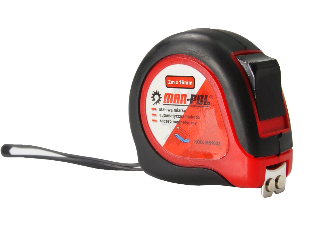 Meter zvinovací pre meranie dĺžok do 2 m. Meter je vyrobený podľa normy CE-MID. Šírka pásma 16 mm. Protišmykový povrch, certifikát CE-MID, aretácia návinu pásma.