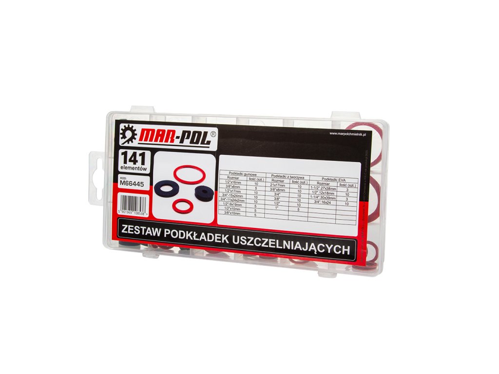 Univerzálna sada tesniacich podložiek prehľadne uložených v praktickom boxe.
