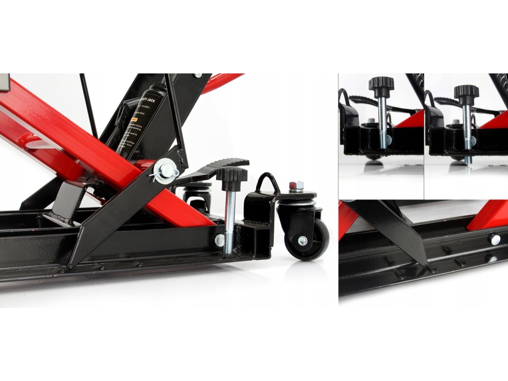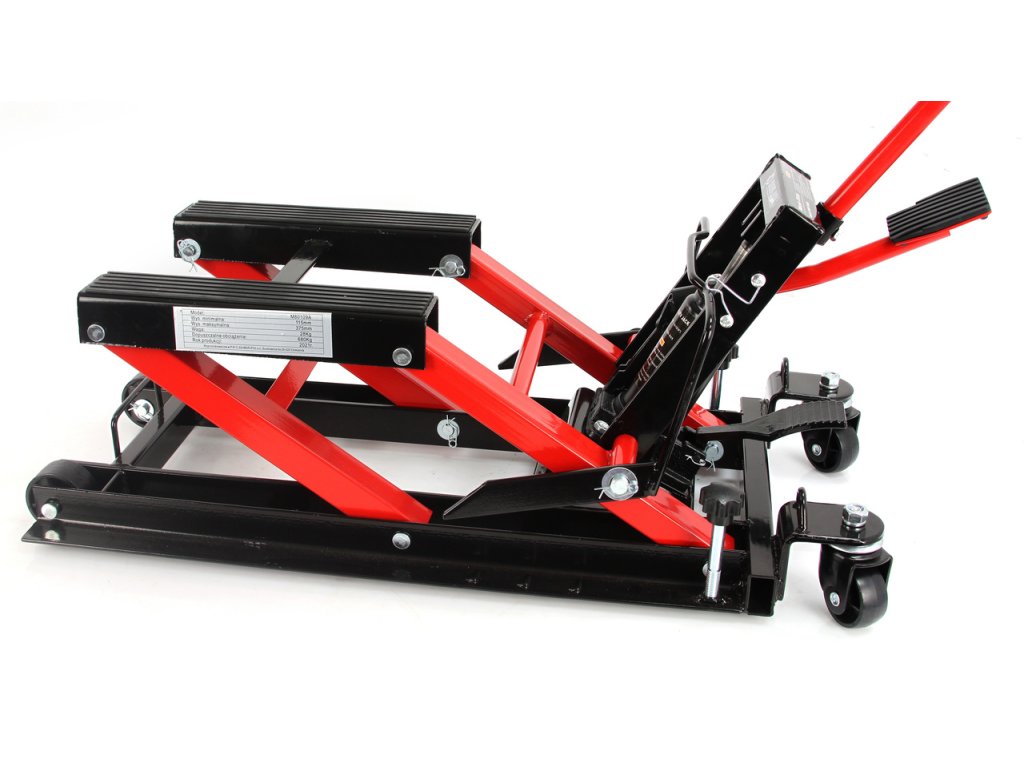 Zariadenie je vybavené 2 praktickými nožnými pedálmi, ktoré umožňujú zdvihnúť a spustiť motocykel bez väčšej námahy.Ideálne na zdvíhanie: motocyklov, štvorkoliek a malých terénnych vozidiel.
