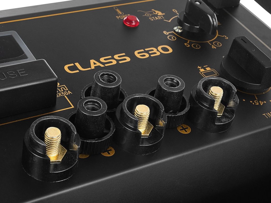 Nabíjačka CLASS 630 s funkciou spustenia je profesionálny nástroj na nabíjanie a podporu spustenia olovených batérií s napätím 12 V; 24 V a kapacita batérie od 20 Ah do 1550 Ah.