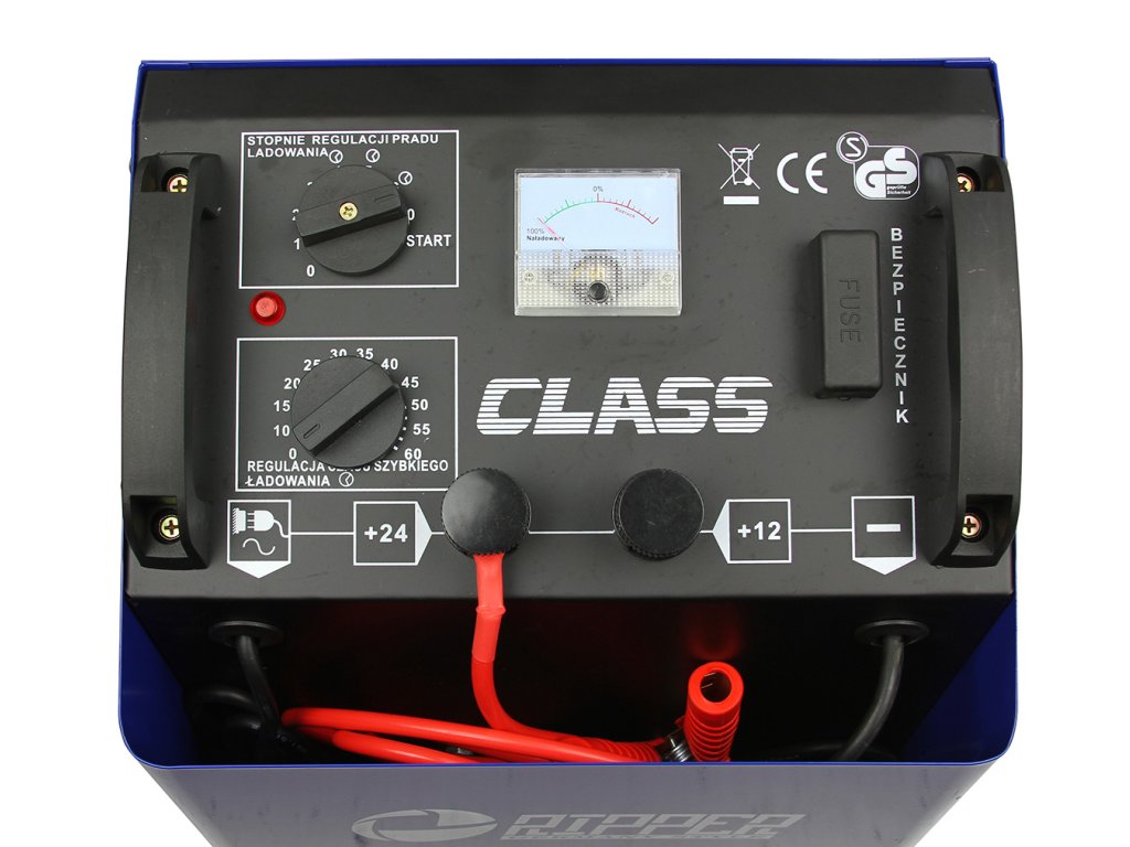 Nabíjačka CLASS 850 s funkciou spustenia je profesionálny nástroj na nabíjanie a podporu spustenia olovených batérií s napätím 12 V; 24 V a kapacita batérie od 80 Ah do 1000 Ah.