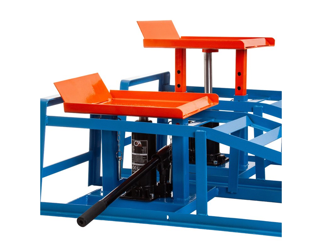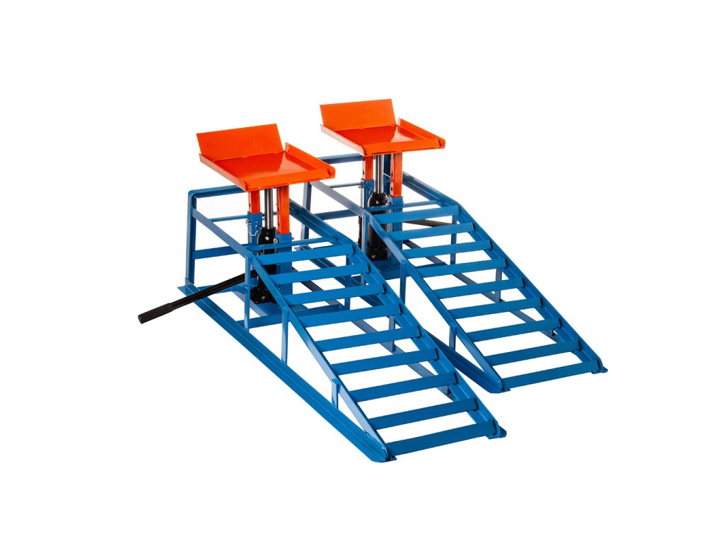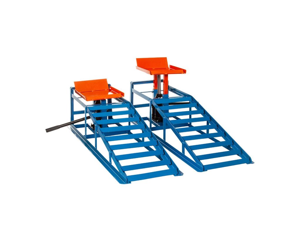 Rampy pre autá vybavené hydraulickými stĺpikovými zdvihákmi umožňujúcimi vysoké zdvihnutie auta.