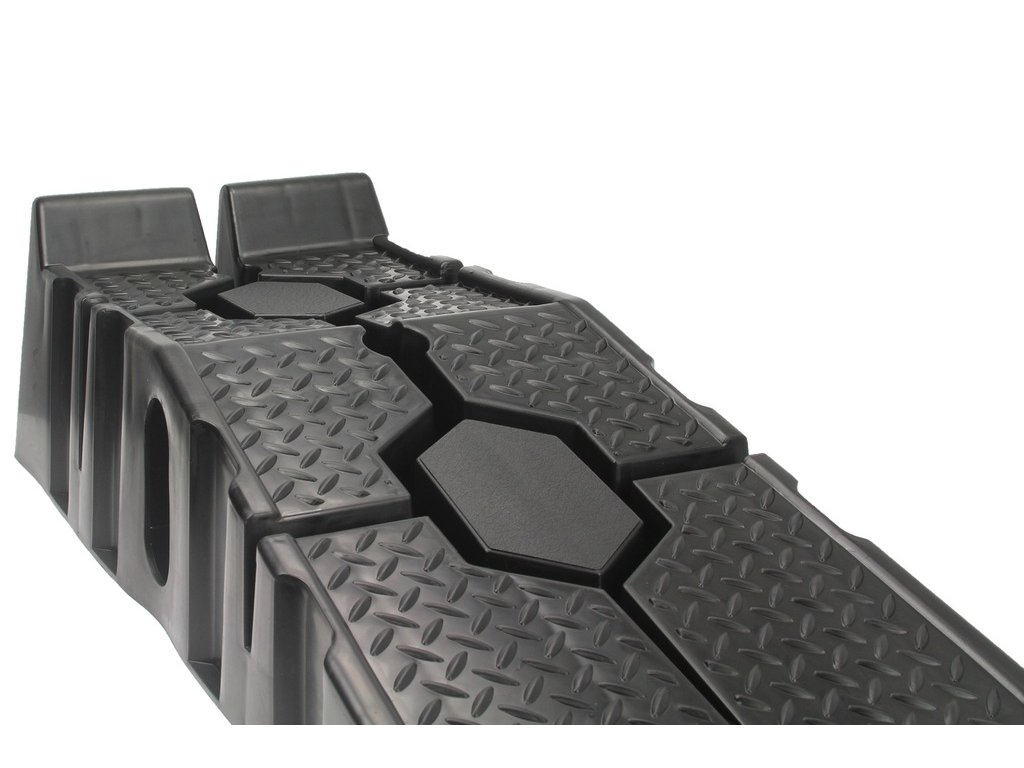 Ponúkané rampy sú vybavené aj gumenou protišmykovou blokádou , ktorá zabraňuje ich pohybu počas rampy. Vďaka tomu sú rampy stabilné a nevyžadujú dodatočnú ochranu.