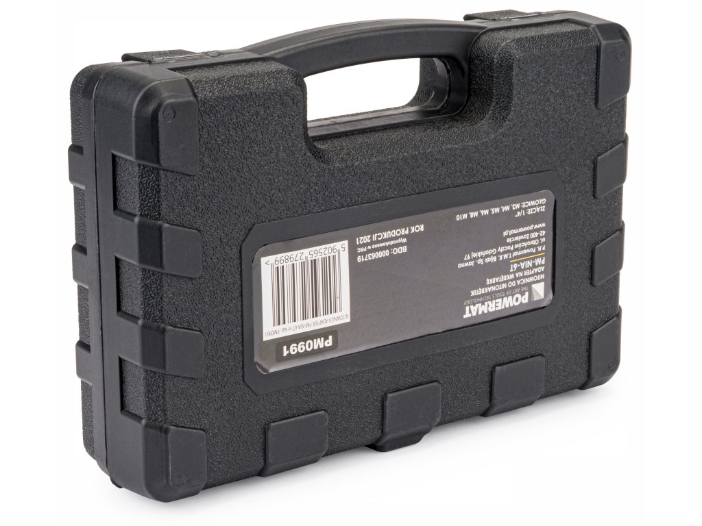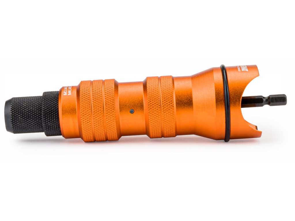 Vďaka tomuto zariadeniu vyrobíte spoje pomocou nitovacích matíc neuveriteľne jednoducho a rýchlo. Nitovačka na skrutkovač/vŕtačku je celá vyrobená z ocele - mimoriadne pevná konštrukcia. Celé je to umiestnené v plastovom kufríku. Adaptér je vhodný pre akýkoľvek bežný skrutkovač alebo vŕtačku.