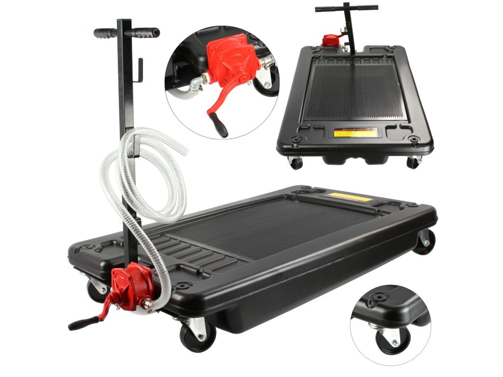 Pojazdná zberná nádoba vhodná na výmenu oleja v motoroch.