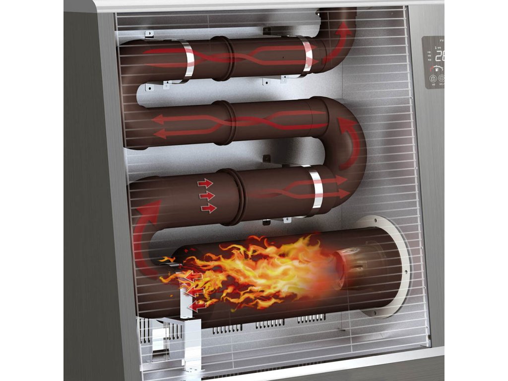 Zariadenie má horák s elektrickým palivovým čerpadlom. Spaľovacie plyny cirkulujú cez potrubia s keramickým povrchom a vytvárajú teplo vo forme infračerveného žiarenia.