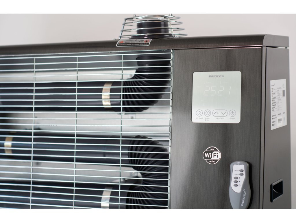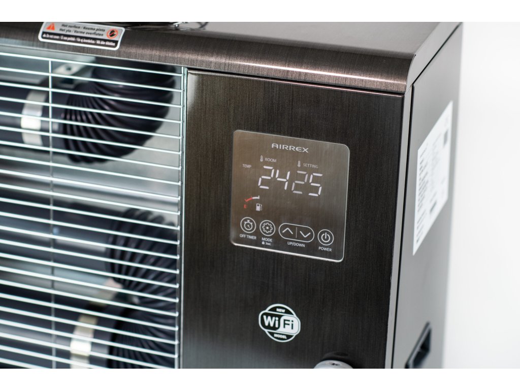 Majte úplnú kontrolu vďaka pripojeniu WiFi a špecializovanej mobilnej aplikácii Airrex, ktorá vám umožní nastaviť časový plán, sledovať úroveň paliva a nastaviť teplotu na diaľku. Vďaka tichej prevádzke 48 dB a komplexným bezpečnostným systémom poskytuje tento ohrievač výkon na profesionálnej úrovni, ktorému môžete dôverovať.