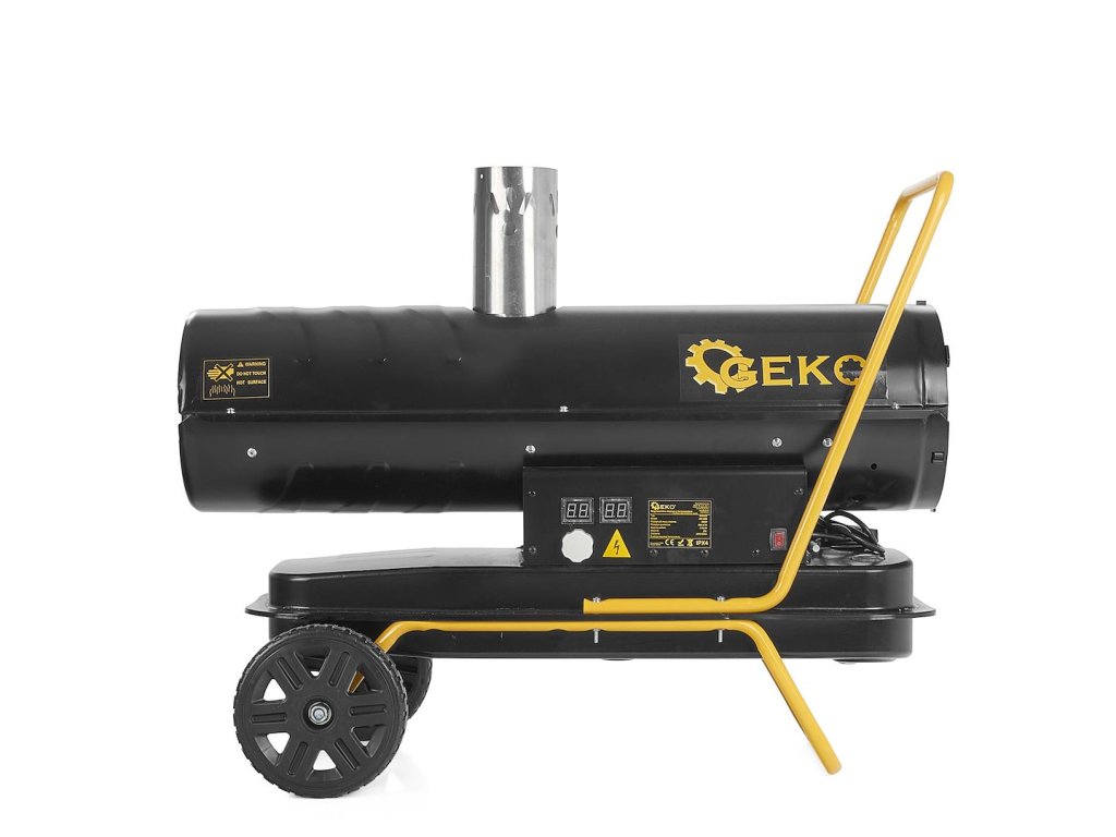 Olejový ohrievač 25000W vybavený termostatom je vysokoúčinné zariadenie, ktoré zaisťuje konštantný prietok veľkého množstva ohriateho vzduchu. Má digitálny displej zobrazujúci zvolenú teplotu vykurovania a teplotu v miestnosti. Ohrievač GEKO je vysokoúčinné, odolné, bezpečné a veľmi ľahko použiteľné zariadenie. Výborne sa hodí na vykurovanie polootvorených priestorov a vetraných priestorov, ako sú výrobné haly, sklady a pod.