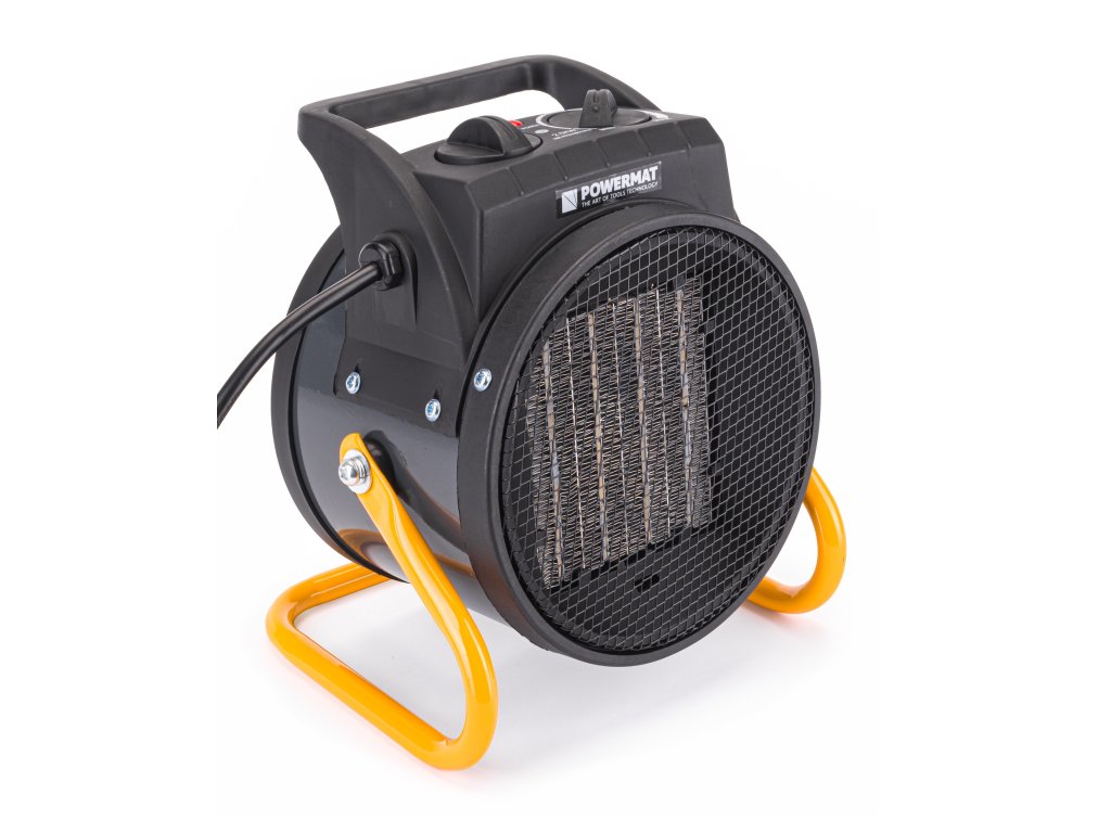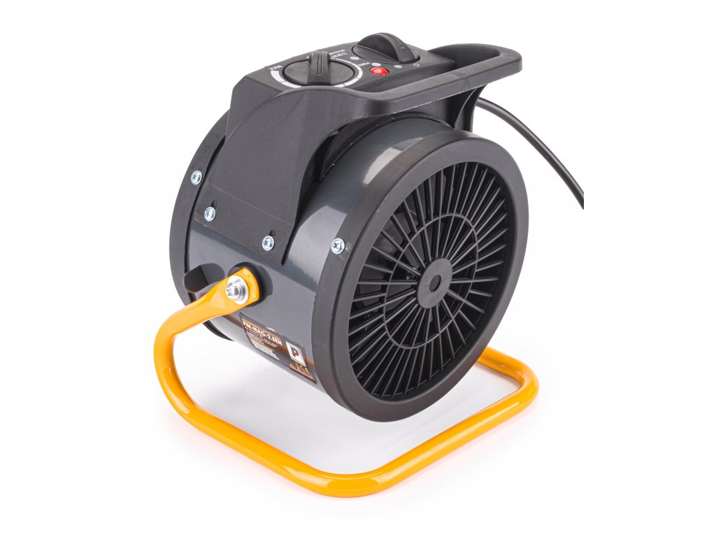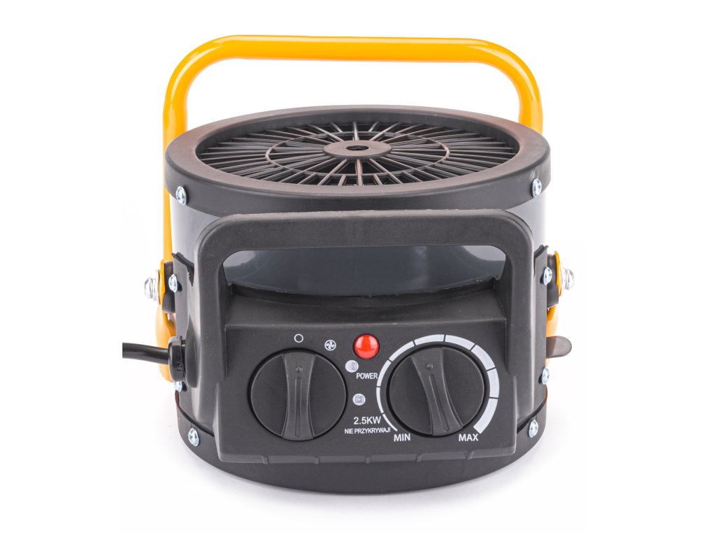 Spoľahlivý 2,5kW elektrický ohrievač je vybavený keramickým výhrevným telesom , ktoré v kombinácii so silným prúdením vzduchu zaisťuje rýchle vykúrenie miestností ako sú obchody, dielne, garáže, domácnosti a pod.