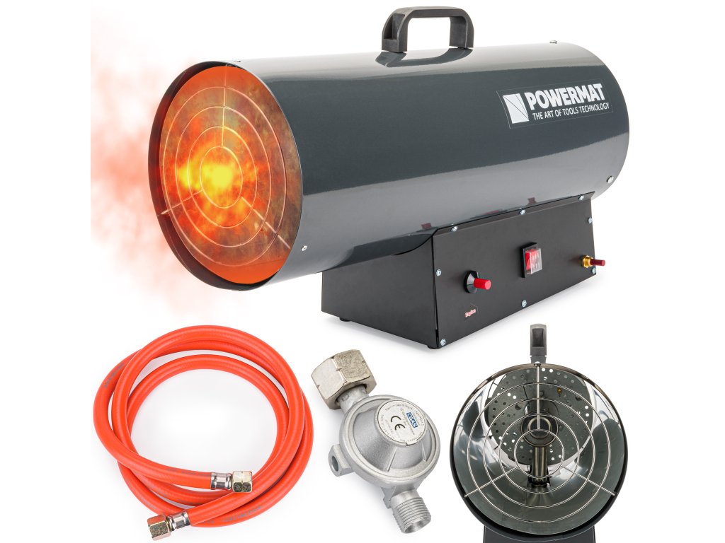 Kompaktný a výkonný plynový ohrievač s výkonom až 65kW je ideálny na vykurovanie veľkých miestností a otvorených priestorov, terás, obytných priestorov, ale aj technických miestností, ako sú sklady, garáže, pivnice, stavby, dielne atď.