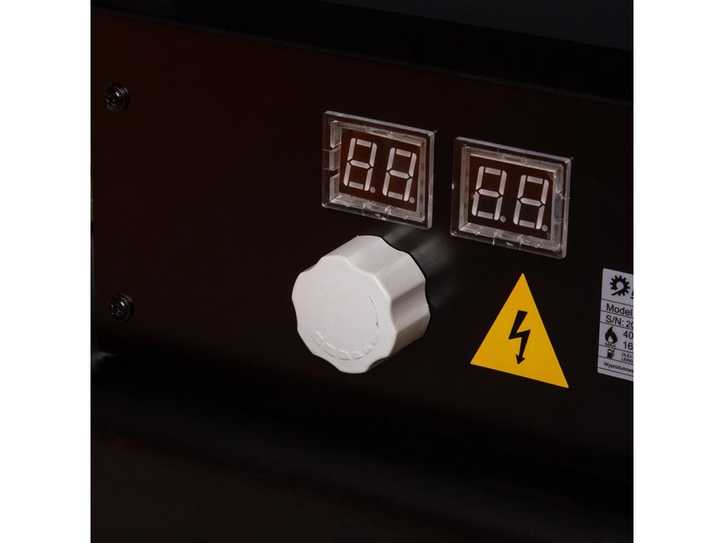Displej vľavo zobrazuje teplotu okolia, zatiaľ čo displej vpravo zobrazuje požadovanú teplotu. Otáčanie gombíka v smere hodinových ručičiek sa zvyšuje teplota, na ktorú sa ohrievač zameria, po jej dosiahnutí sa zníži výkon na jej udržanie.