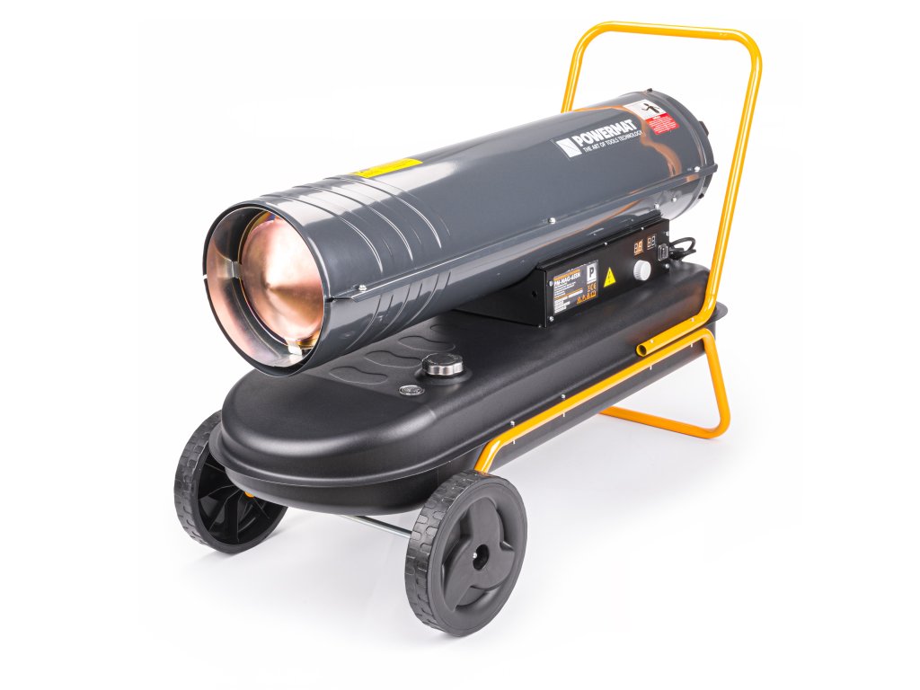 Olejový ohrievač 65000W vybavený termostatom je vysokoúčinné zariadenie, ktoré zaisťuje konštantný prietok veľkého množstva ohriateho vzduchu. Má digitálny displej zobrazujúci zvolenú teplotu vykurovania a teplotu v miestnosti. Naftové delo je vysokoúčinné, odolné, bezpečné a veľmi ľahko použiteľné zariadenie. Výborne sa hodí na vykurovanie polootvorených priestorov a vetraných priestorov, ako sú výrobné haly, sklady a pod.