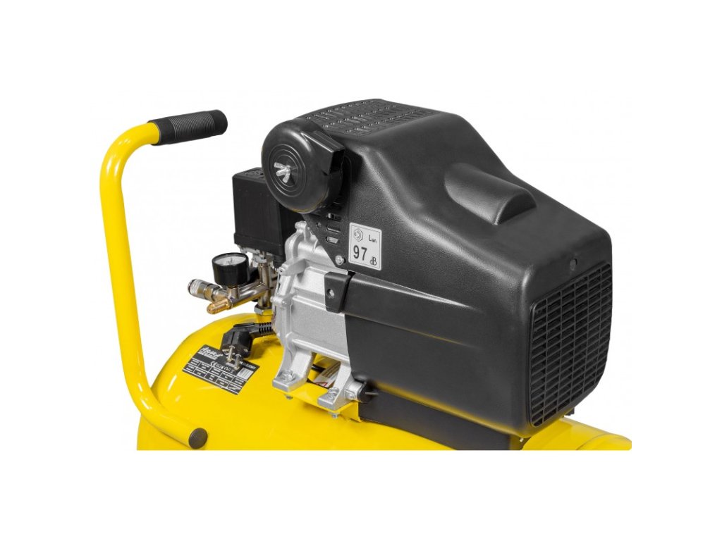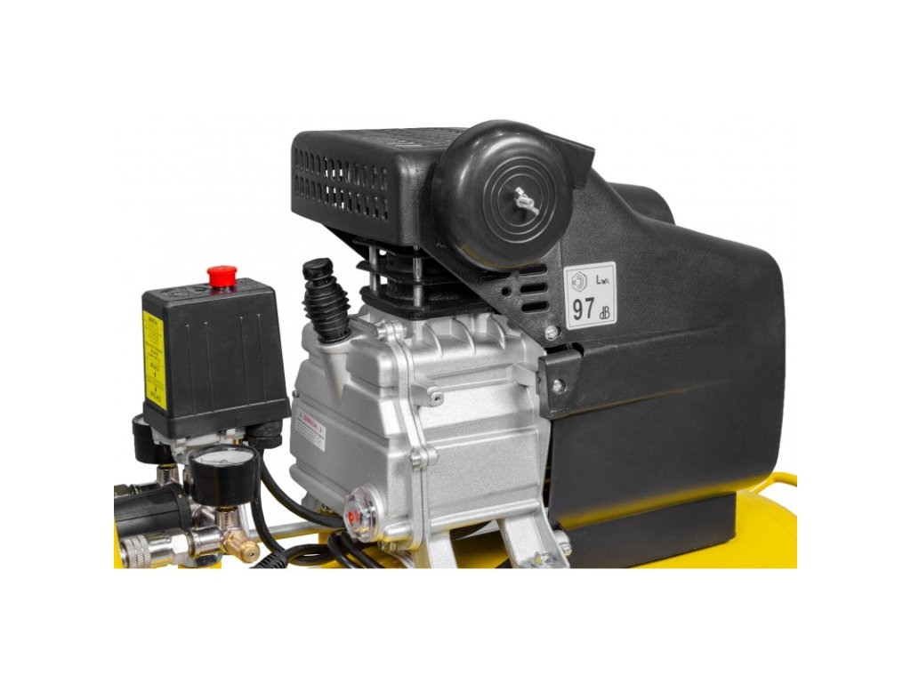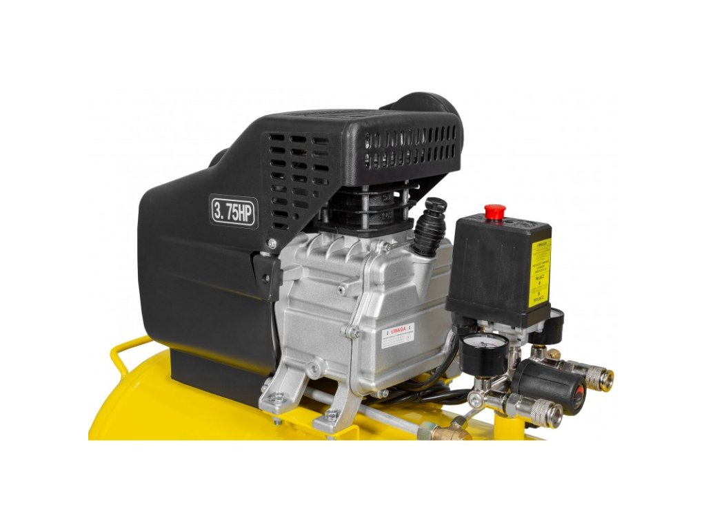 Kompresor má redukčný ventil vybavený dvoma rýchlospojkami a dvoma manometrami. Kompresor sa automaticky vypne, keď dosiahne 8 BAR.