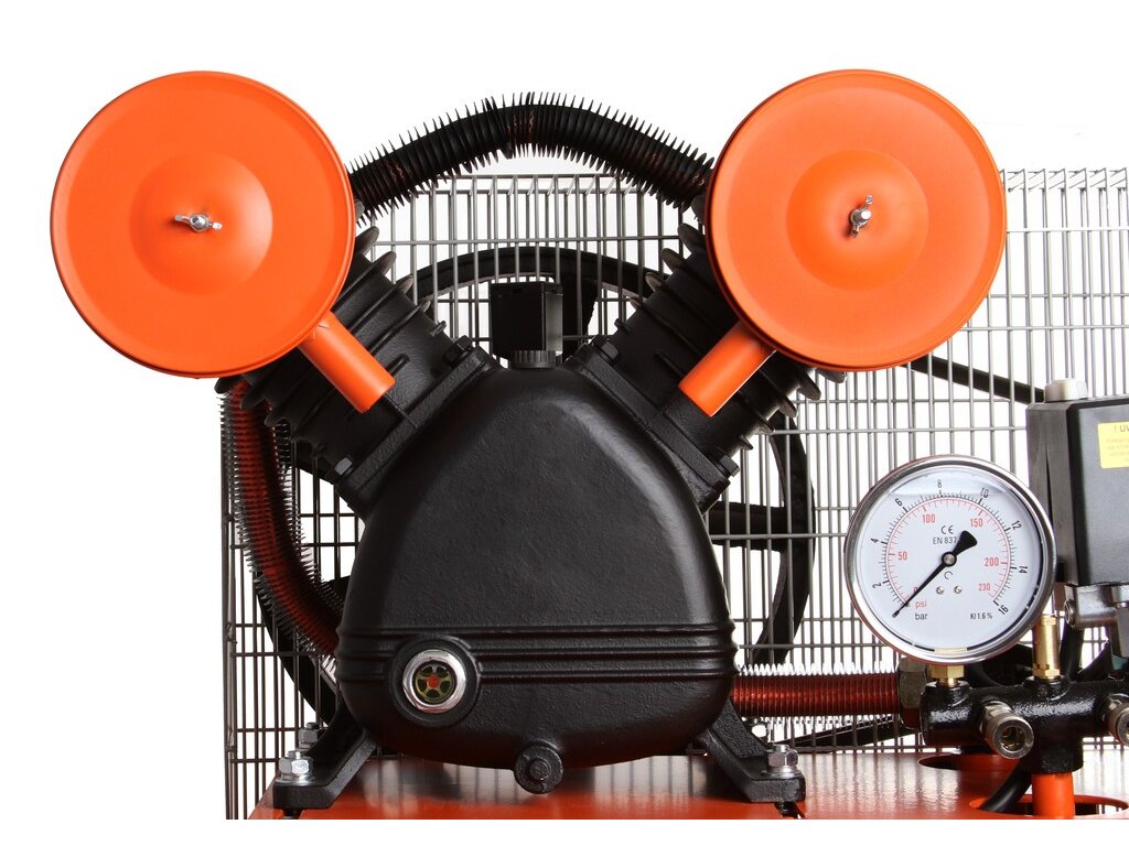 Je vhodný pre väčšinu pneumatických zariadení – na pneuservis, čistenie, fúkanie a lakovanie. Moderná technologicky pokročilá konštrukcia a premyslený dizajn. Vysoká účinnosť prúdenia vzduchu. Zväčšený priemer valcov a vysoký prietok zabraňuje usadzovaniu nečistôt.