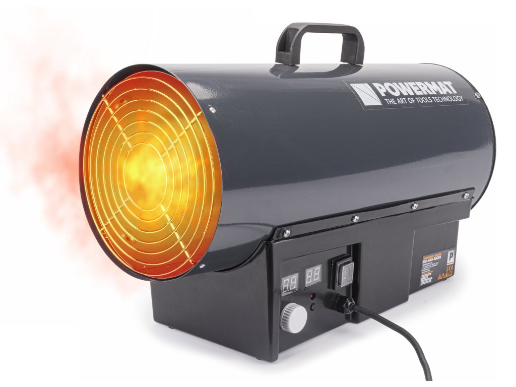 Plynový ohrievač s výkonom 45kW je ideálny na vykurovanie veľkých miestností a otvorených priestorov, terás, obytných priestorov, ale aj technických miestností, ako sú sklady, garáže, pivnice, stavby, dielne atď.