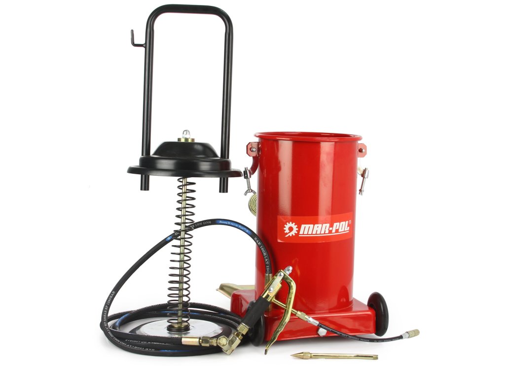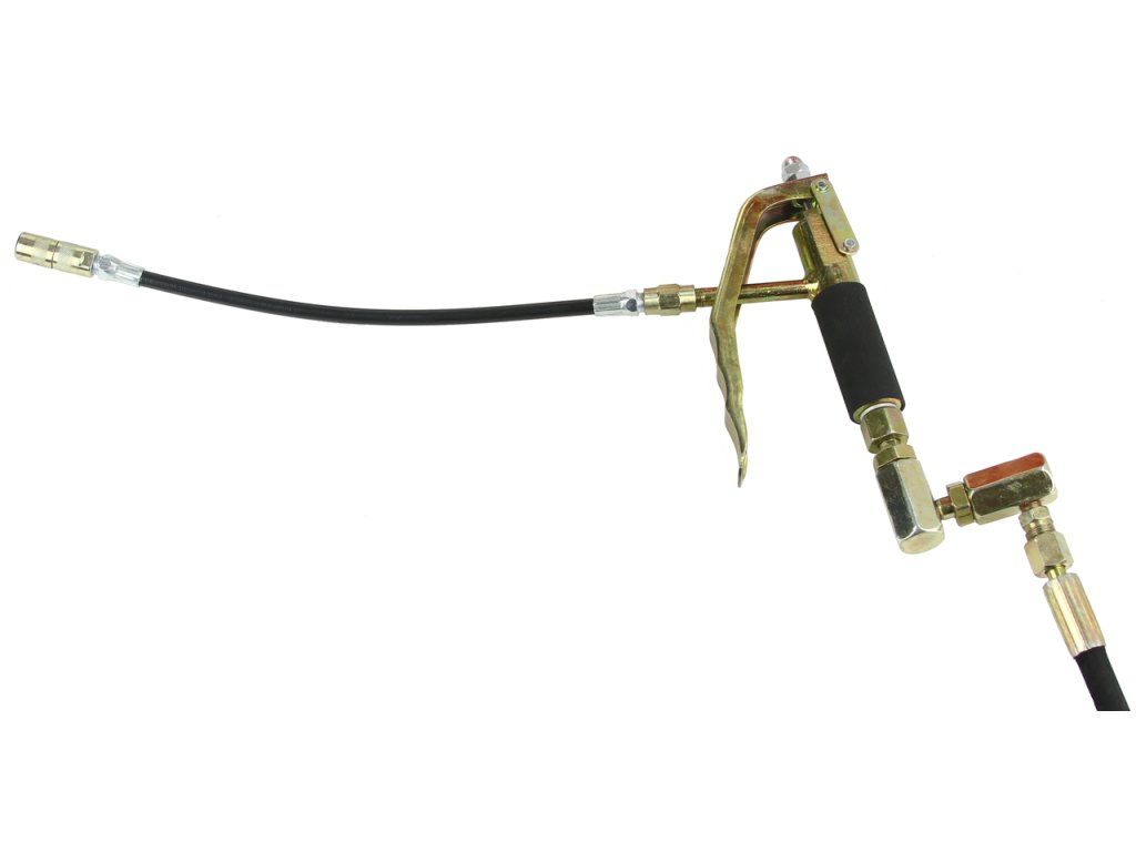 Silná a pevná kovová konštrukcia. Dlhá hadica umožňuje voľnosť pohybu pri práci, presnosť mazania a zvyšuje tak komfort obsluhy. Pneumatický pohon umožňuje pohodlné používanie a možnosť vstrekovania maziva s vysokou viskozitou.