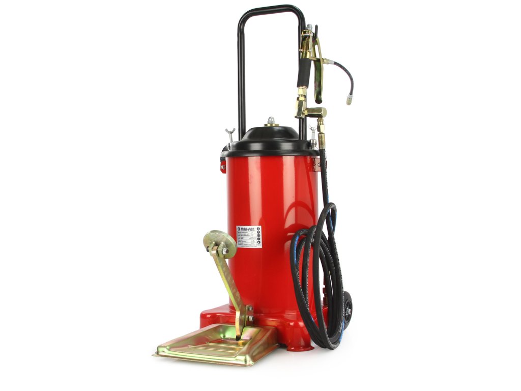 Profesionálny mazací lis, kde tlak vytvára nožná pumpa, je určená pre všetky dielenské práce, pri servisoch, údržbe a opravách strojov a zariadení.