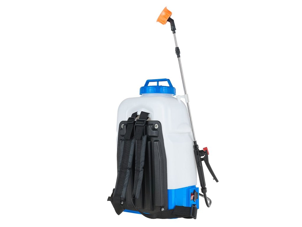 Výrobok sa vyznačuje silnou kovovou teleskopickou kopijou s vymeniteľnými dýzami a účinným membránovým čerpadlom poháňaným vstavanou 12 V batériou, vďaka ktorej samotné zariadenie vytvára vhodný prevádzkový tlak.