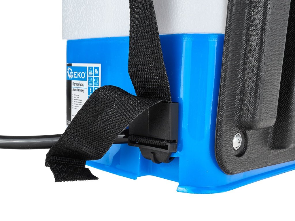 Pohodlné, nastaviteľné ramenné popruhy pre obe ruky uľahčujú prácu a bezpečnostný ventil zabraňuje nehodám počas používania. Zadná stena, ktorá je v kontakte so chrbtom, je vybavená špeciálnou rohožou, ktorá zaisťuje prívod vzduchu a vetranie tela. Toto riešenie umožňuje dlhú a pohodlnú prácu aj v horúcich dňoch.