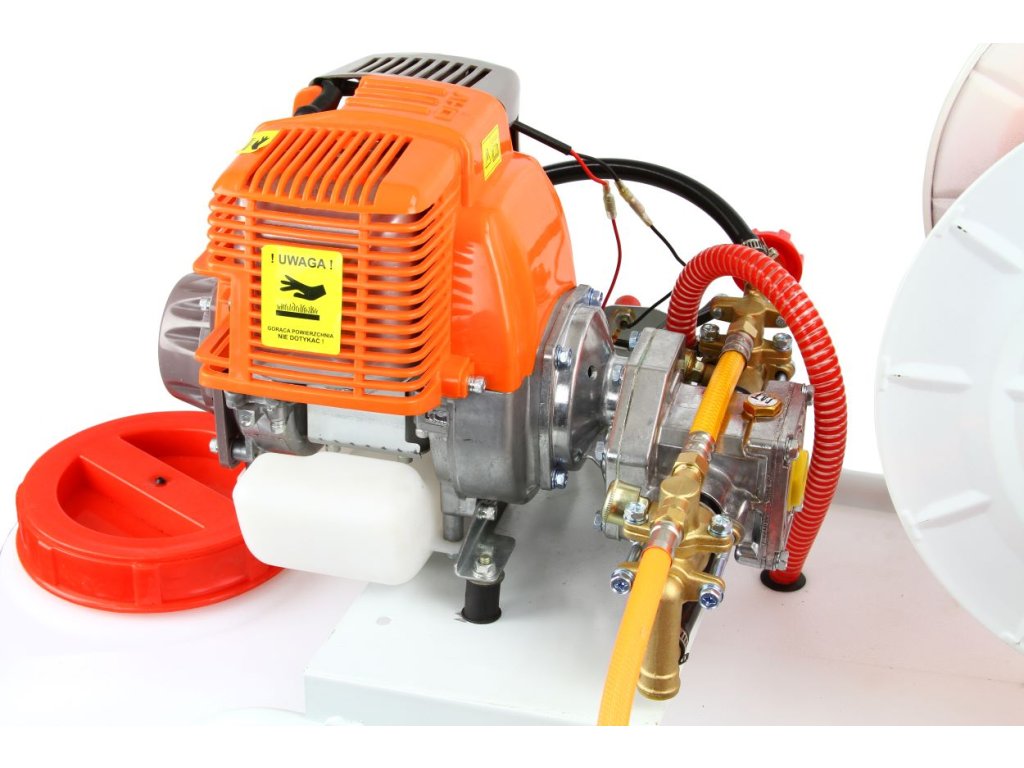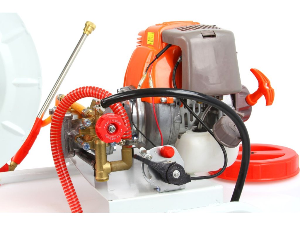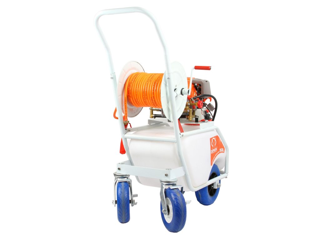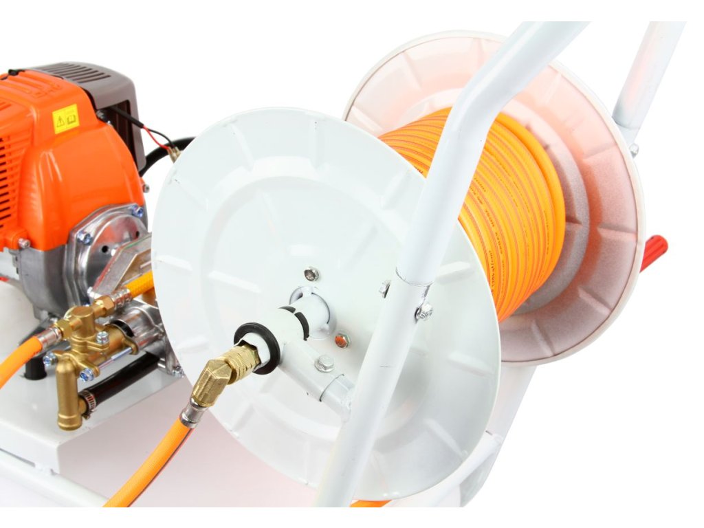 Benzínový vozíkový postrekovač na veľké plochy 50L s navíjaním hadice.