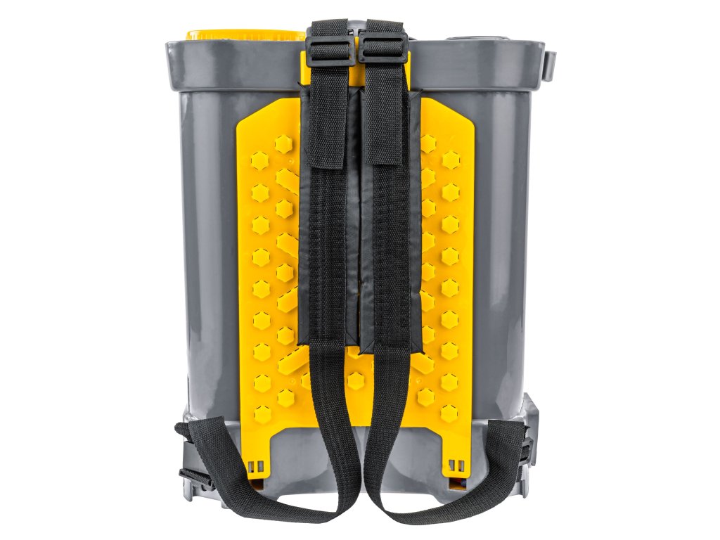 Pohodlné, nastaviteľné ramenné popruhy pre obe ruky uľahčujú prácu a bezpečnostný ventil zabraňuje nehodám počas používania. Zadná stena, ktorá je v kontakte so chrbtom, je vybavená špeciálnou rohožou, ktorá zaisťuje prívod vzduchu a vetranie tela. Toto riešenie umožňuje dlhú a pohodlnú prácu aj v horúcich dňoch.