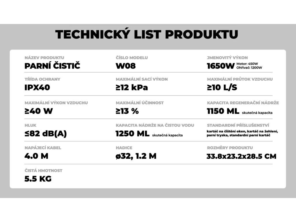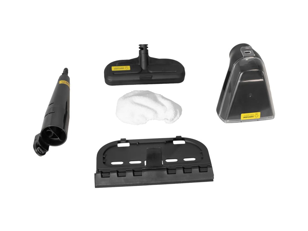 Tepovač a parný čistič PROTECO PREMIUM 1650W je neoceniteľným kompaktným pomocníkom v domácnosti. Jeho výkon 1650 W a sací tlak 12 kPa zaručujú účinné odstraňovanie nečistôt, rýchle zahrievanie a dostatočné množstvo pary na dôkladné čistenie celej domácnosti. Veľké nádrže na vodu – 1250 ml na čistú vodu a 1150 ml na špinavú vodu – umožňujú dlhšiu prevádzku bez častého vyprázdňovania alebo dopĺňania. Okrem toho je možné do nádrže pridať nízko penivé čistiace prostriedky, ktoré zvyšujú účinnosť parného čistenia a zanechávajú povrch svieži a hygienicky čistý.