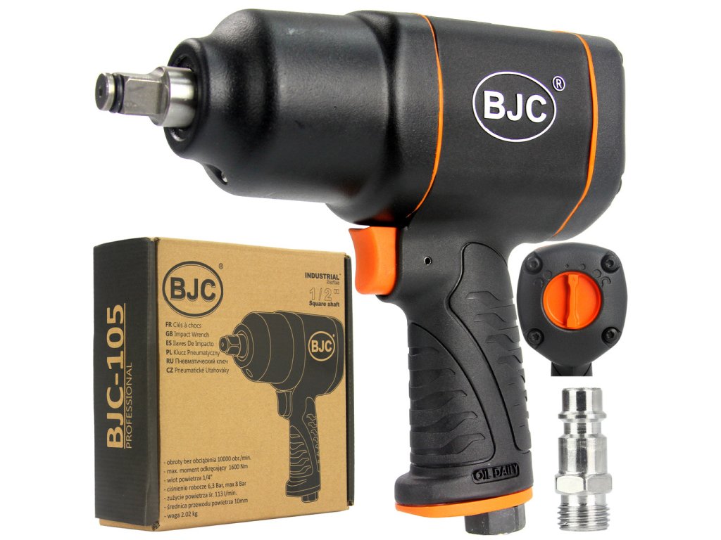 Výkonný a kompaktný pneumatický uťahovák BJC sa veľmi dobre hodí pre povoľovanie a uťahovanie matíc kolies rôznych typov osobných vozidiel na všetky závity kde je potrebné vyvinúť maximálnu silu. Vďaka kompozitovému telu je veľmi ľahký, pevný a robustný.