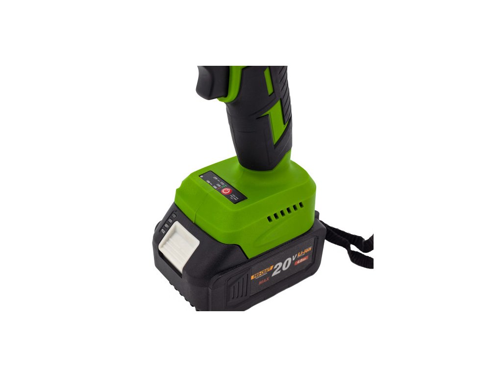 - Akumulátorový pohon: Náradie je vďaka batérii plne mobilné a nezávislé od elektrickej siete, čo zvyšuje flexibilitu pri práci.