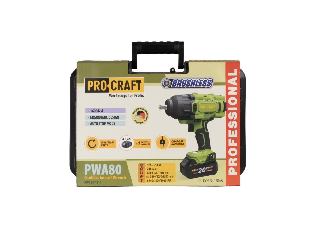 Procraft PWA80 1b Akumulátorový rázový uťahovák 1600Nm
