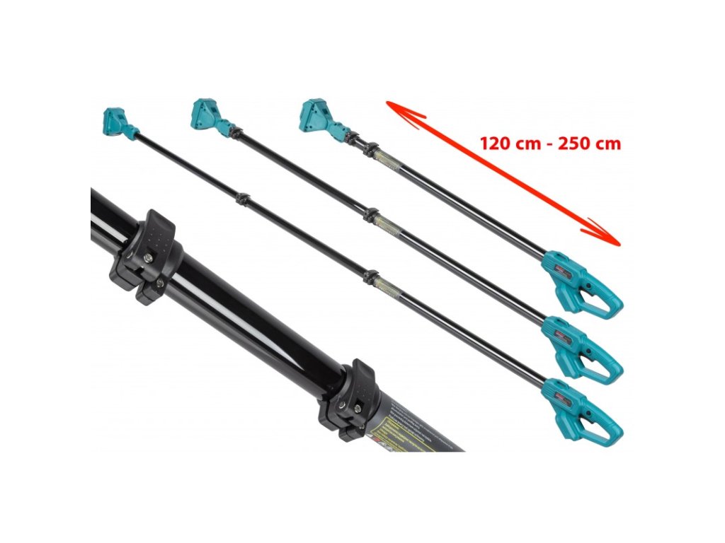 Teleskopická predlžovacia tyč na AKU náradie - píly. S týmto nástavcom dokážete orezať stromy pohodlne a rýchlo.