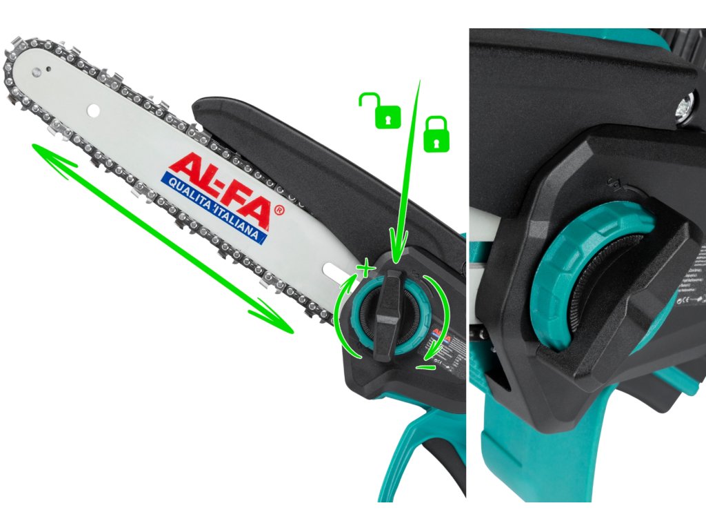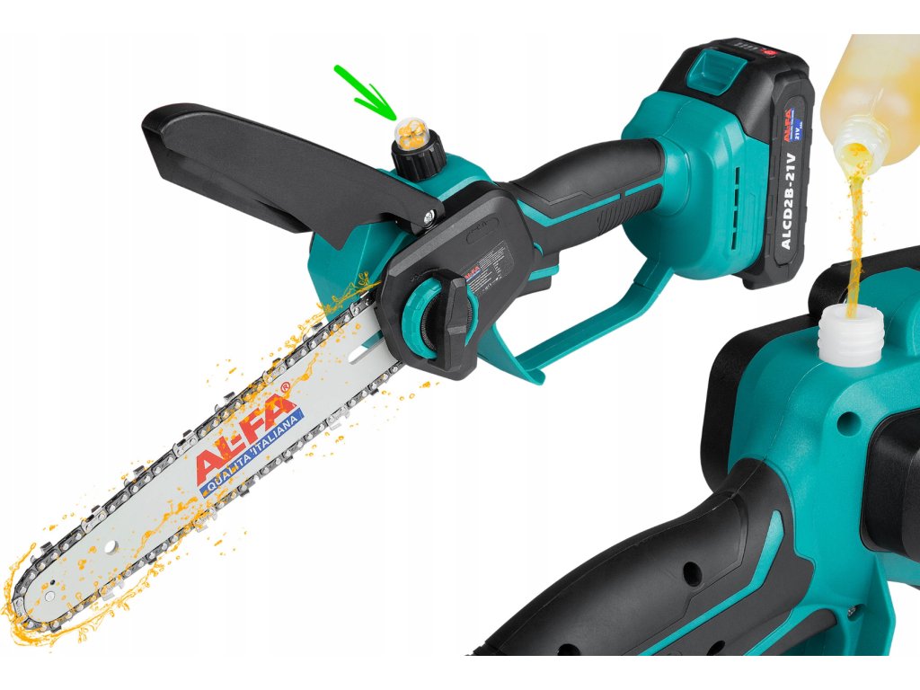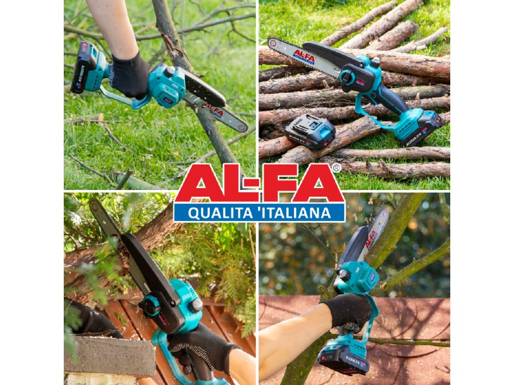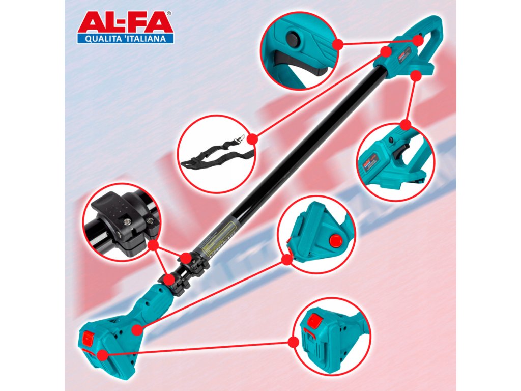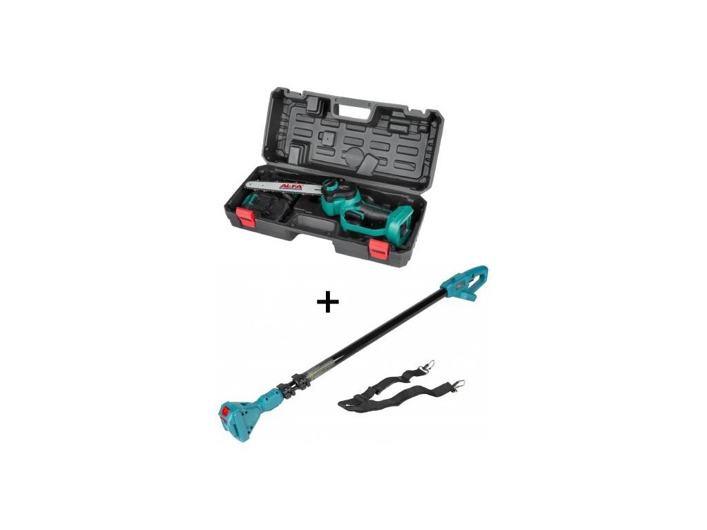SET AL-FA ALCD2B-21V Malá ručná AKU píla 2x3.0Ah a AL-FA ALHP250 Teleskopická tyč