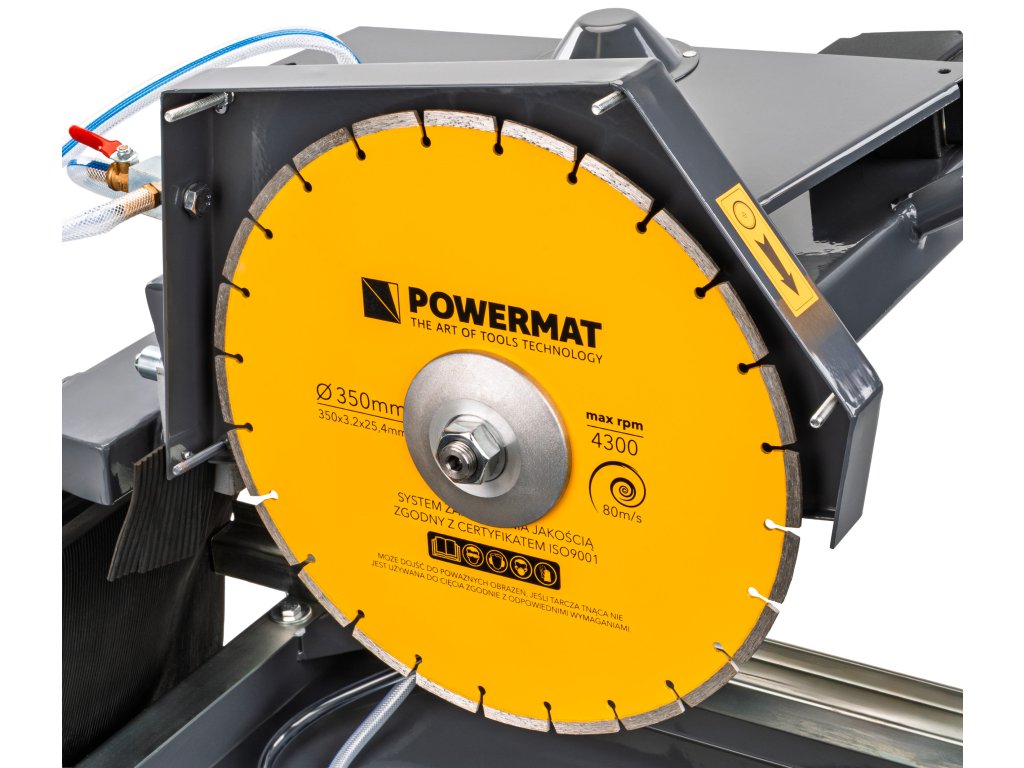 Dodávaný diamantový kotúč s rozmermi 350 x 3,2 x 25,4 mm umožňuje rýchle a presné rezanie tvrdých materiálov so zvýšenou životnosťou kotúča.